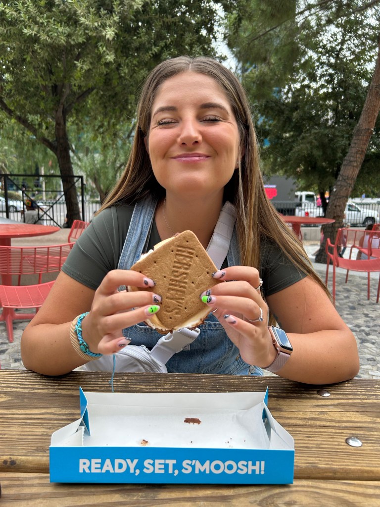After our gambling escapade, we hit the famous Vegas Strip for some grub. Our taste buds landed us at New York New York for some delicious crepes. But we didn’t stop there – we had a sweet tooth, so we checked out the Hershey Chocolate World store and devoured a massive Hershey s’more. Talk about a sugar rush!
